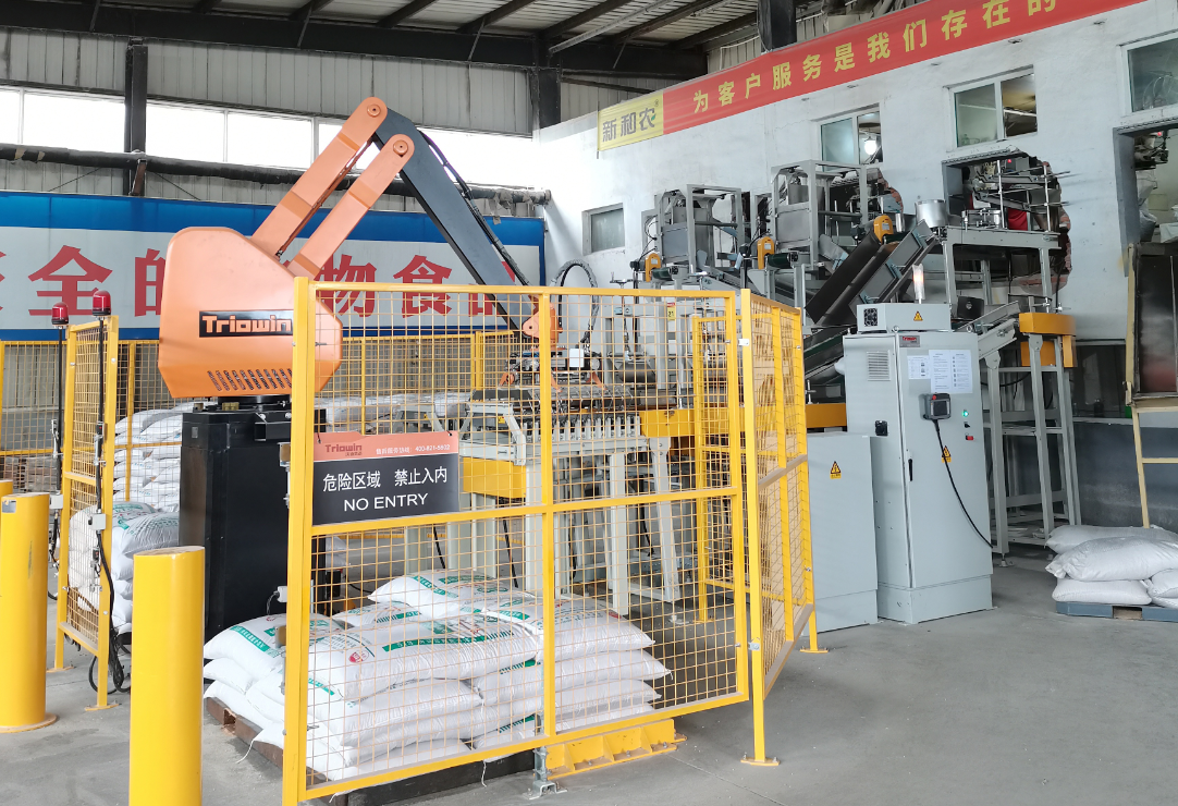 隨著國內(nèi)產(chǎn)業(yè)結(jié)構(gòu)調(diào)整,畜牧行業(yè)轉(zhuǎn)型升級、新常態(tài)發(fā)展機遇期,加上和農(nóng)牧業(yè)集團的創(chuàng)新式發(fā)展,集團飼料銷量產(chǎn)能加大,提速生產(chǎn)計劃,實現(xiàn)產(chǎn)業(yè)的智能化制造,和農(nóng)牧業(yè)集團對生產(chǎn)工業(yè)上進行設(shè)備升級,緩解工人工作壓力,在生產(chǎn)車間成品接包區(qū)引入自動化設(shè)備碼垛機器人。